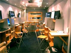 Wer braucht ein IT-Mobil, welche Vorteile habe ich? Es ist das innovative Marketing- und/oder Schulungssystem für Anbieter von Webinhalten, Branchensoftwarehersteller, ISP's, ASP's, sämtliche software- und Hardwareorientierten IT-Komponenten, E-Commerce-Anwendungen, Peripherieanlagenhersteller, wie z. B. USV-Anlagen. Selbstverständlich ist auch ein mehr Eventorientierter Einsatz, wie z. B. Autorennen bei einem "Tag der offenen Tür" oder ein "Moorhuhnschießen" möglich. Denkbar sind auch Einsätze im Schulungsbereich, wie z. B. Computerkurse für ältere Menschen. Ihren Ideen sind (fast) keine Grenzen gesetzt. |