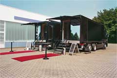 Dieses Modul ermöglicht übersichtliche Präsentationen mit einer Nutzfläche von knapp 45 qm (2 Einheiten - Fahrzeug und Anhänger). Die Ausstattung umfasst neben einer modernen Beleuchtungsanlage, Klimatisierung und Heizung. Sie haben Sie die Möglichkeit Ihre Firmenflagge an zwei fest montierten Fahnenmasthalterungen zu befestigen, sodass Ihr Event durch die beiden Fahnenmastspitzen in der Höhe von ca. 7 Metern bereits aus weiter Ferne zu erkennen ist. Dieser Typ ist modular einsetzbar. Eine einzelne Einheit bietet ca. 18 qm Nutzfläche. Das System ist beliebig erweiterbar, wobei die Einheiten seitwärts oder rückwärts zusammengestellt werden.
