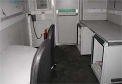 The XL VIP module is a perfect combination of a catering module and a observation platform. The catering module includes a dishwasher, hot water rinse, refrigerator and various shelves and sill plates. The roof of the module is fully accessible over a stairway and enabling a generous observation platform with a great view.